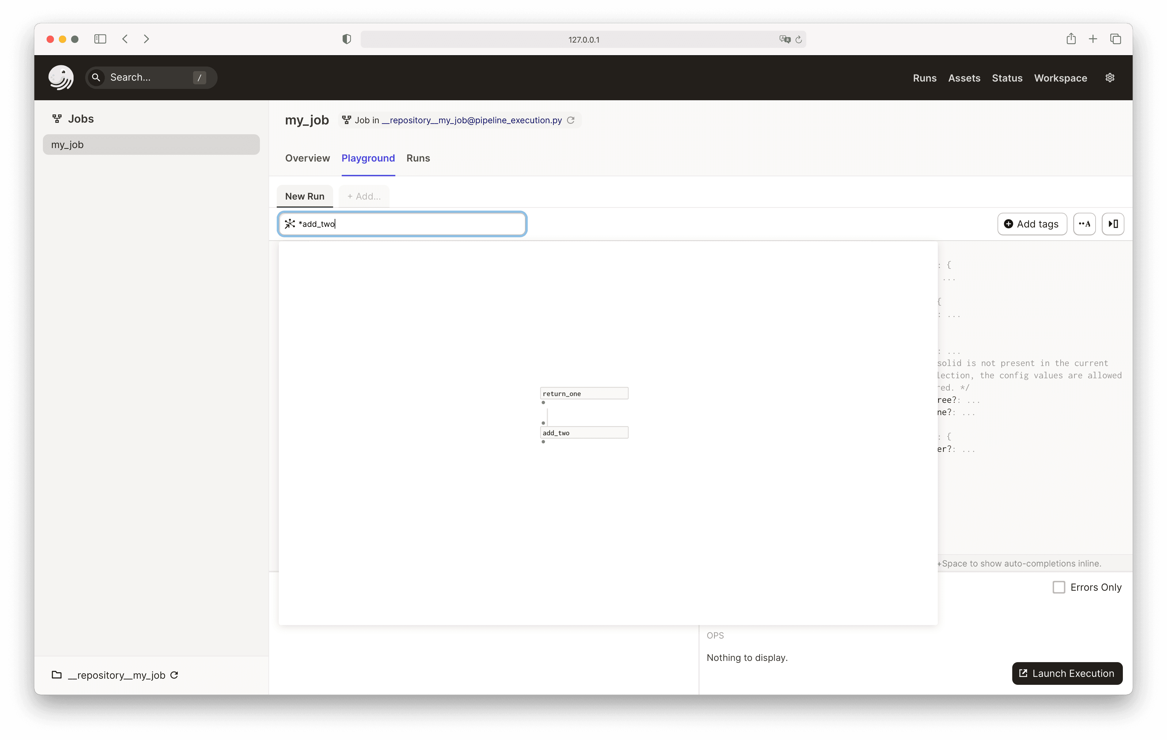 The Launchpad also offers a configuration editor to let you interactively build up the configuration. Refer to the Dagster UI documentation for more info.